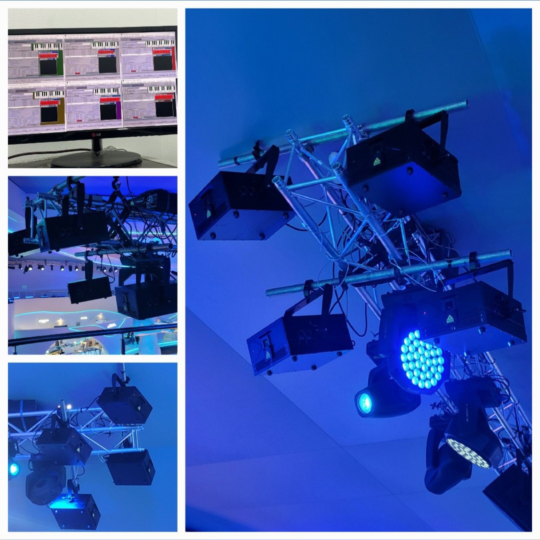 Компания "Орион-АртМ" для данной инсталляции установила 16 лазерных источников различной мощности (от 15W до 45W), которые проецируют лазерную анимацию на фигуры с разных сторон